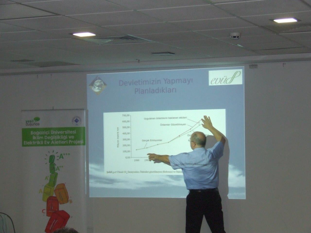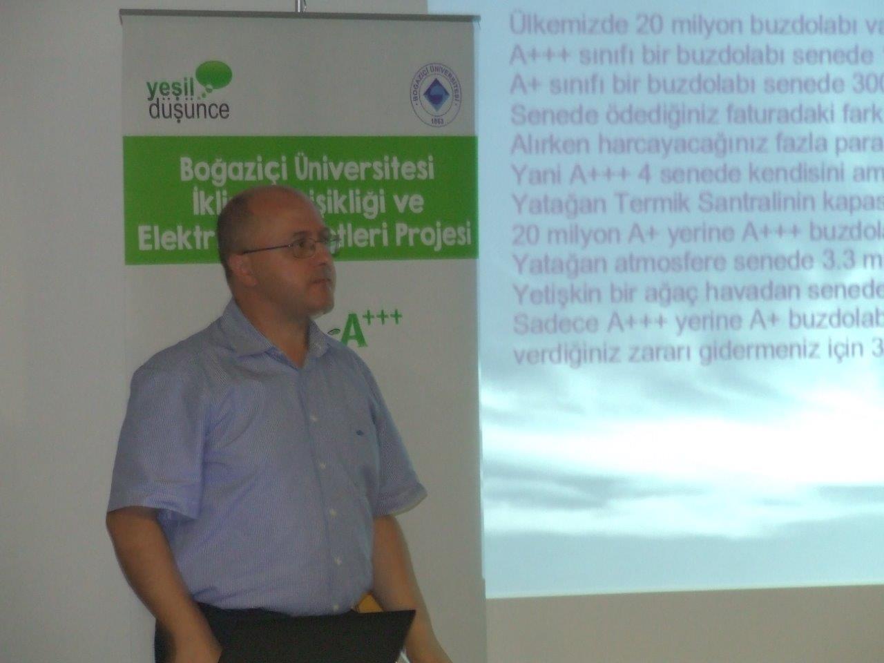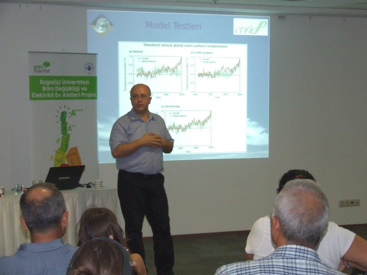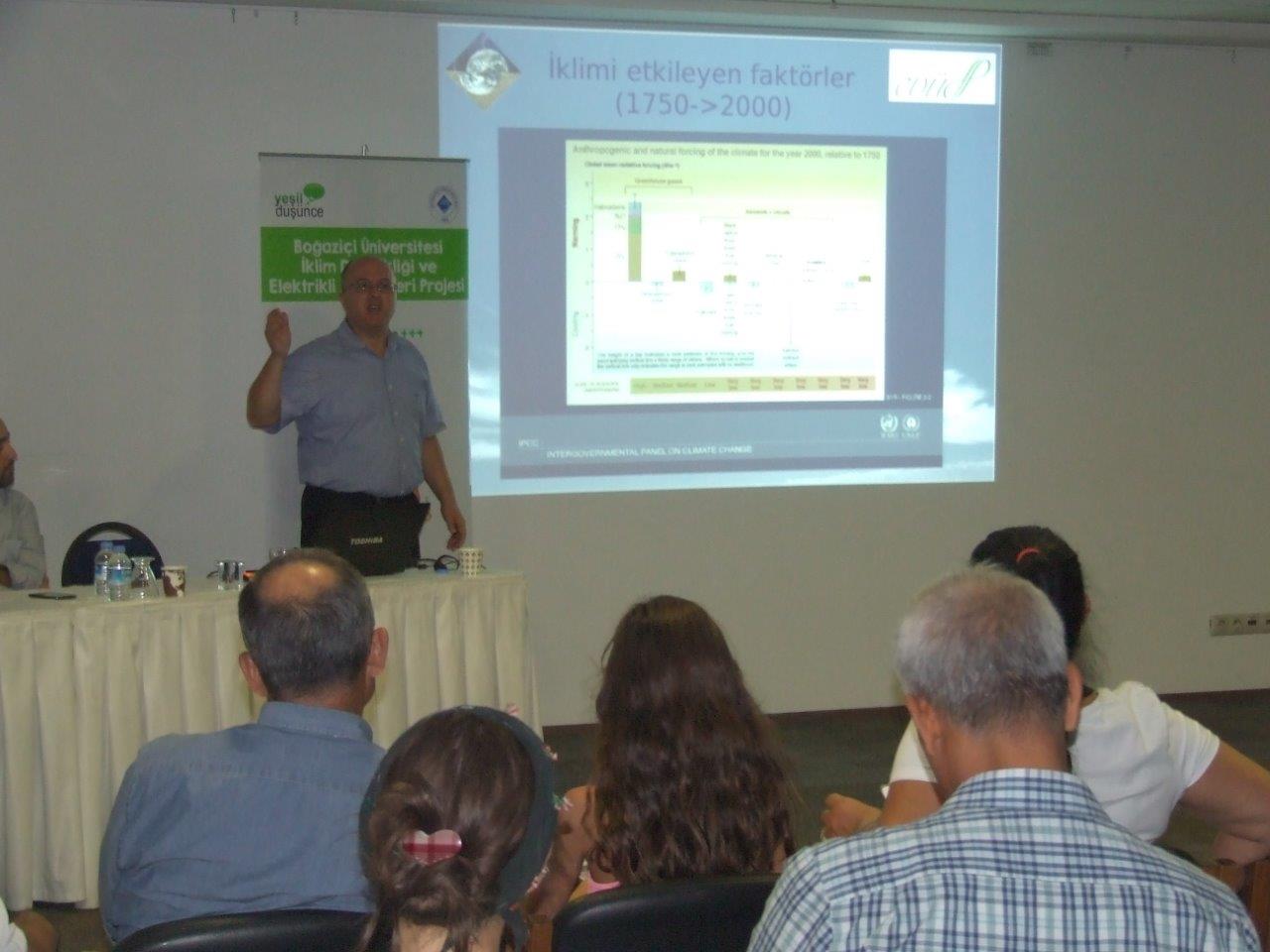 Boğaziçi Üniversitesi Fizik Bölümü’nden proje yürütücüsü Prof.Dr Levent Kurnaz, katılımcılara İklim Değişikliği ve Enerji Verimliliği konularında bir sunum gerçekleştirdi.