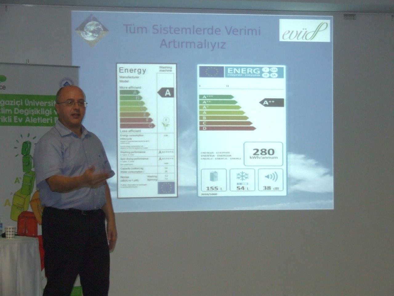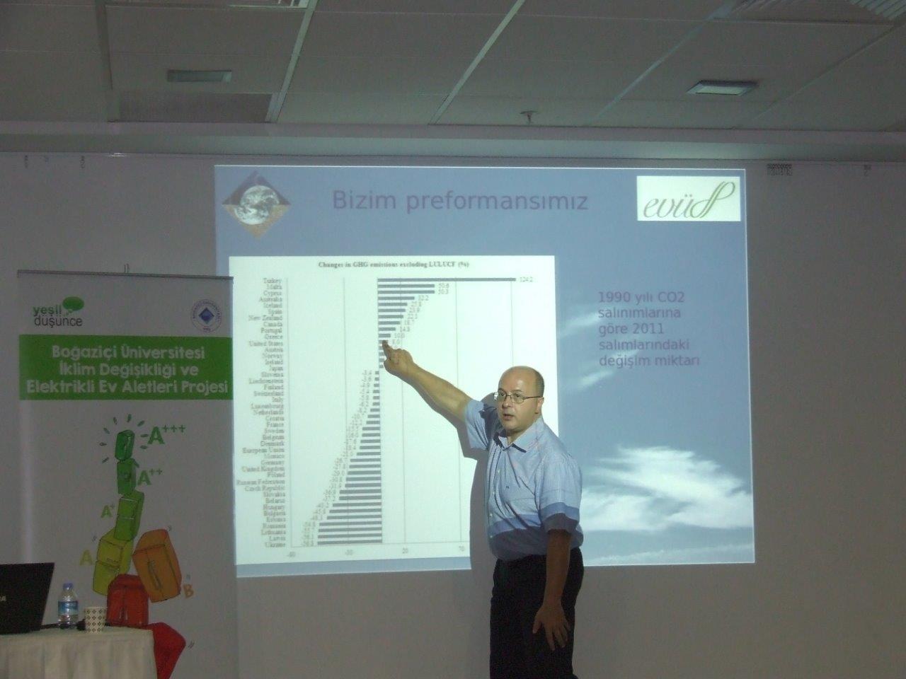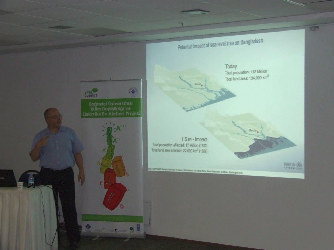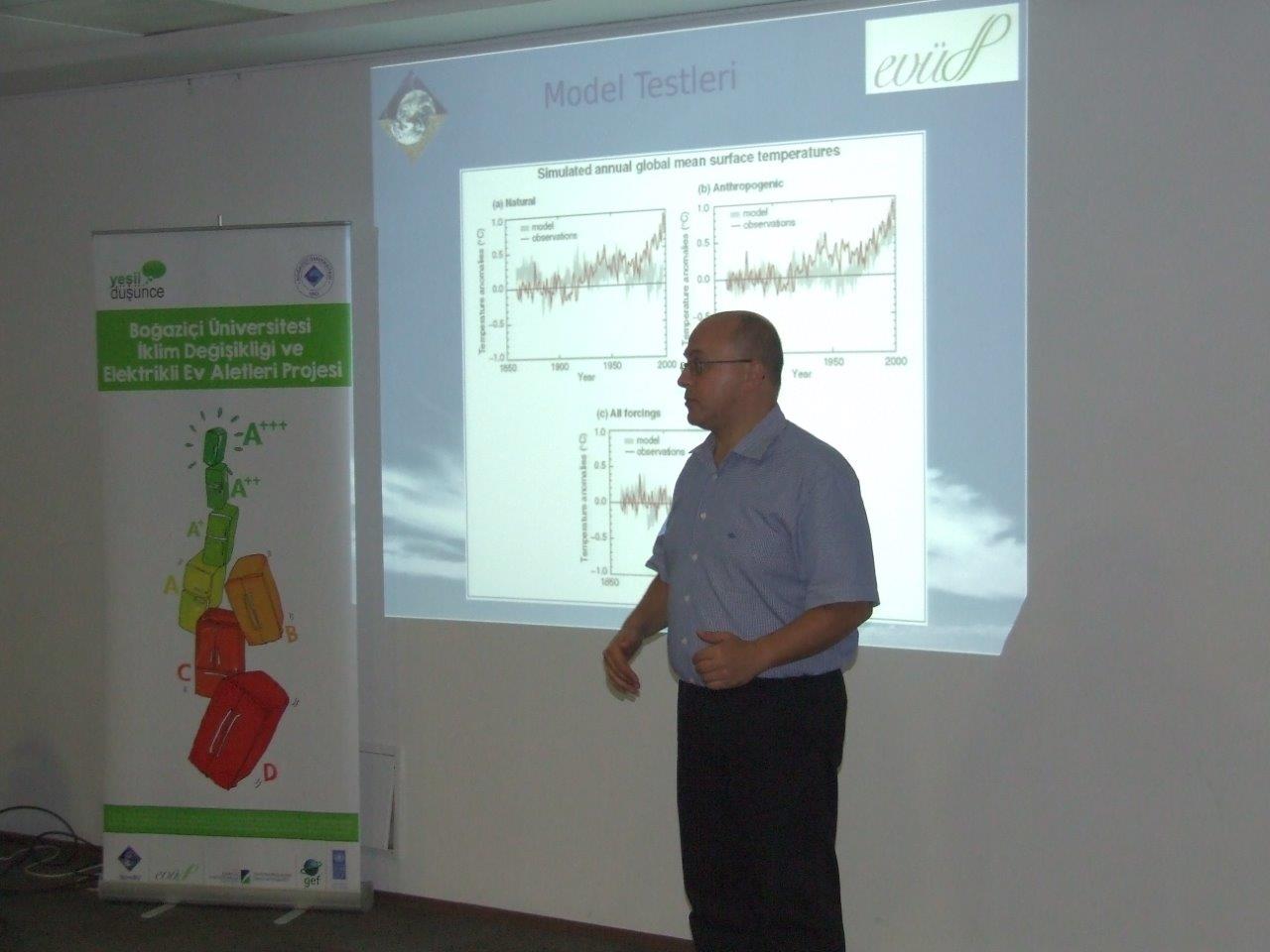 Boğaziçi Üniversitesi Fizik Bölümü’nden proje yürütücüsü Prof.Dr Levent Kurnaz, katılımcılara İklim Değişikliği ve Enerji Verimliliği konularında bir sunum gerçekleştirdi.