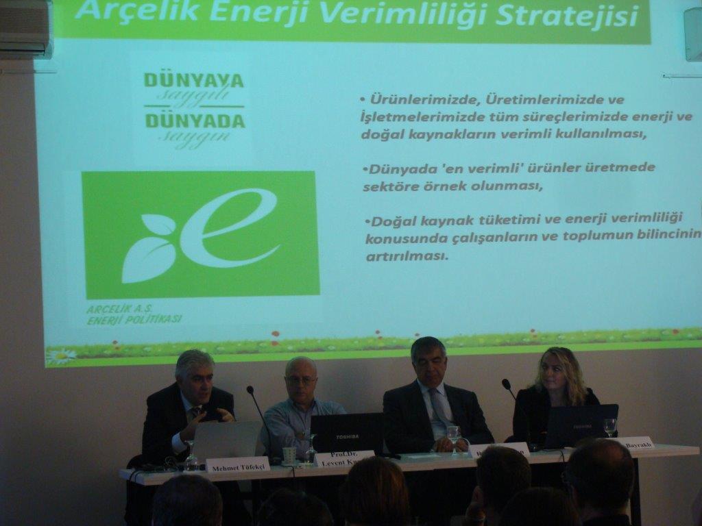 Arçelik Pazarlama Yöneticisi Mehmet Tüfekçi, Arçelik tarafından Enerji Verimliliği konusunda yapılan çalışmalar, ürünlerin üretim süreci, arge çalışmaları, bu konuda şirket olarak yaptıkları enerji verimliliği çalışmaları ve sosyal sorumluluk projeleriyle ilgili detaylı bilgiler sundu.