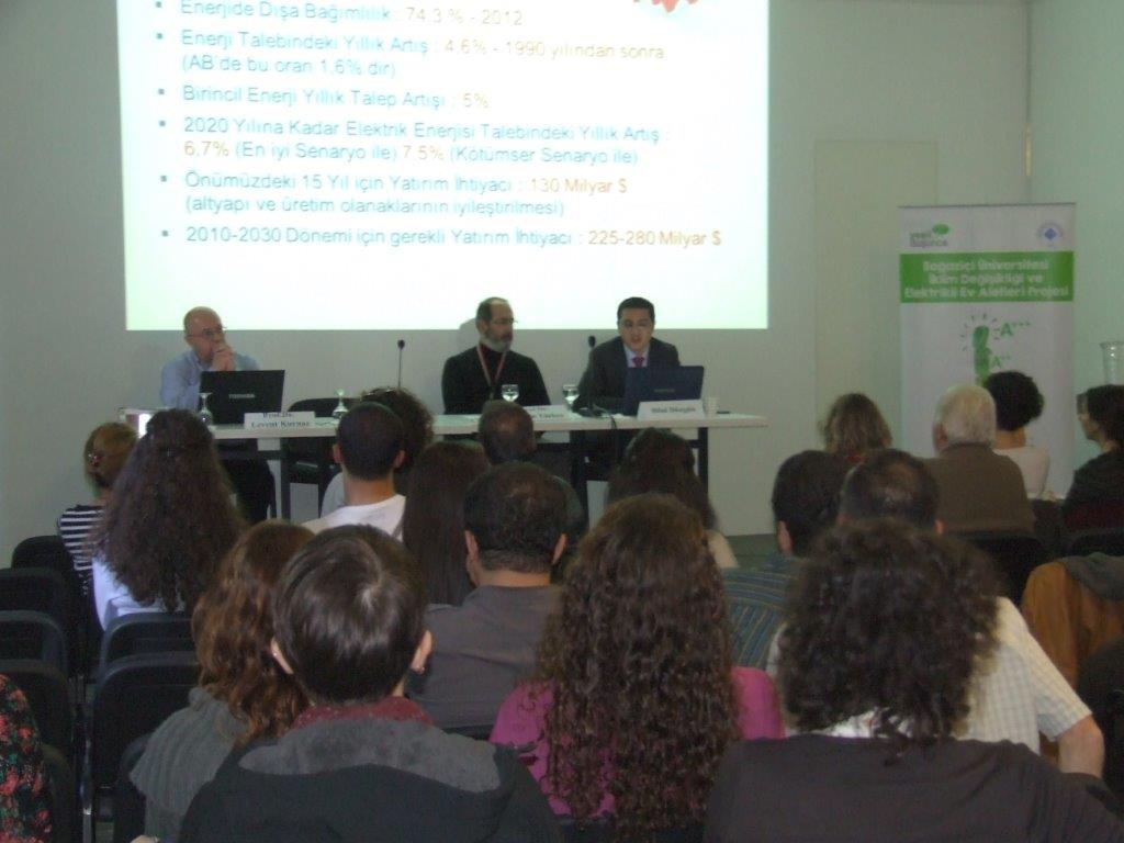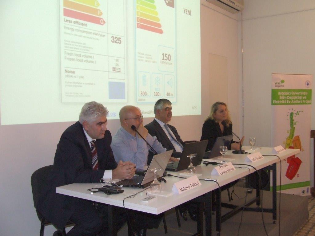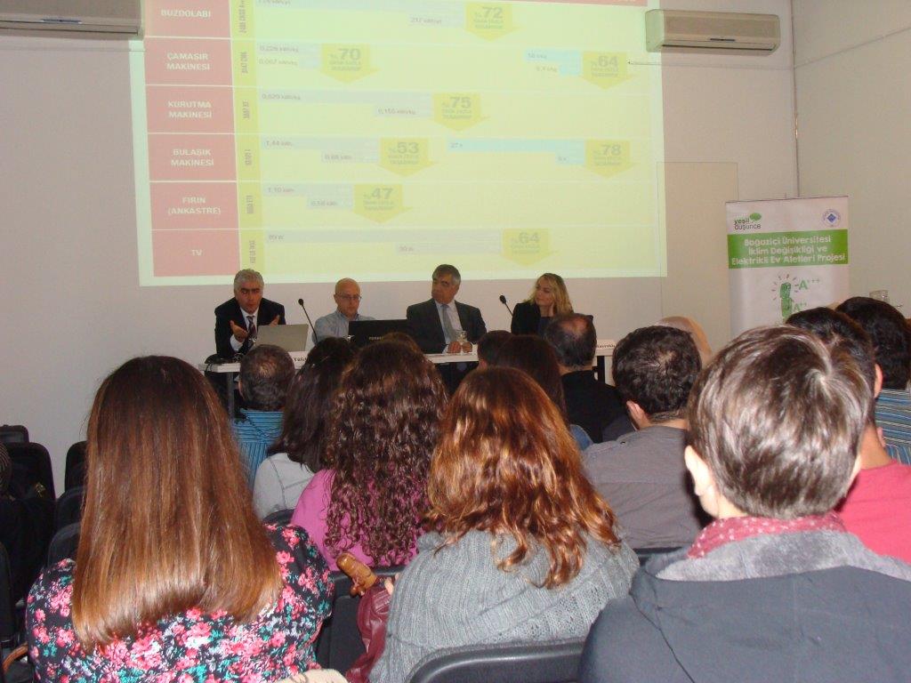 Konferansımızın birinci oturumunda açılış konuşması proje yürütücümüz Prof. Dr. Levent Kurnaz tarafından yapılan konferansımızın birinci gününde Enerji verimli ev aletlerinin iklim değişikliği üzerindeki etkileri tüm boyutları ile tartışıldı.