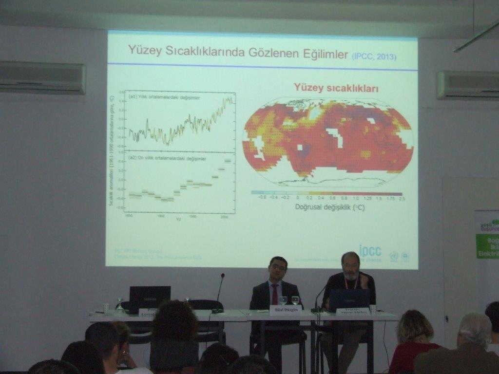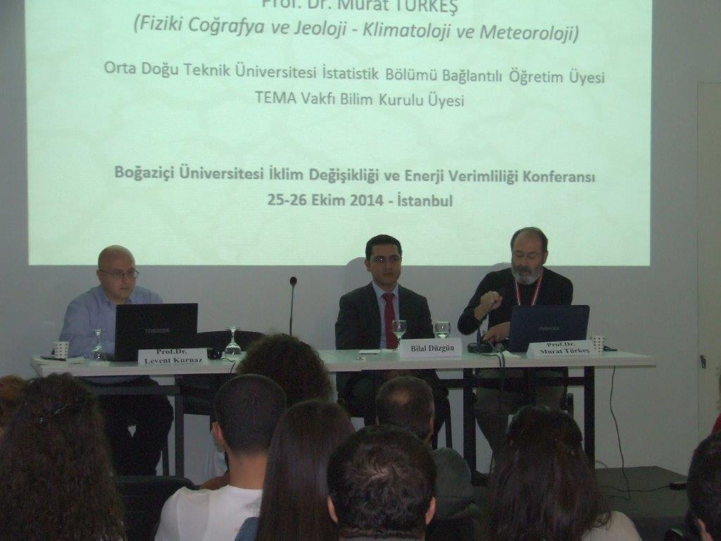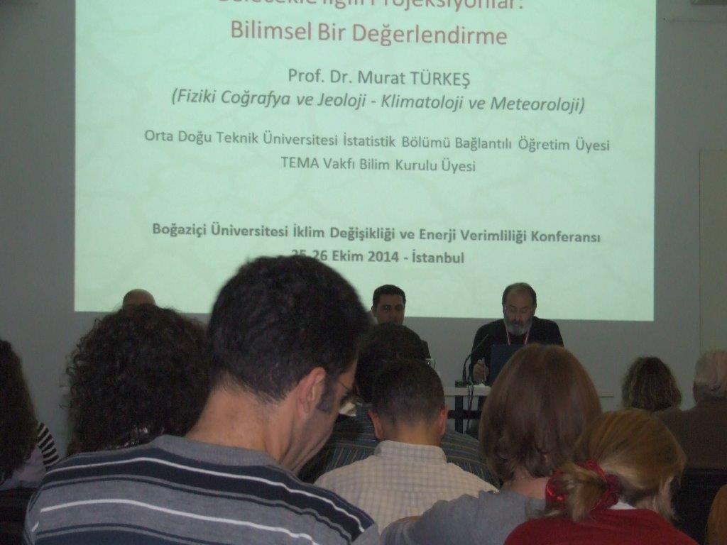 Konferansımızın son konuşmacısı Prof. Dr. Murat Türkeş, Enerji verimliliği ve iklim değişikliği konularında yıllara göre görülen değişimleri örnekleriyle birlikte detaylı olarak sundu. İklim Değişikliği ve Sera gazı konusunda yapılan uluslar arası çalışmalar, protokollerin tarihi hakkında bilgilendirmelerdi bulundu. İklim değişikliği ile ilgili yanlış bilinen veya yanlış ifade edilen konularla ilgili detaylı açıklamalarda bulundu.