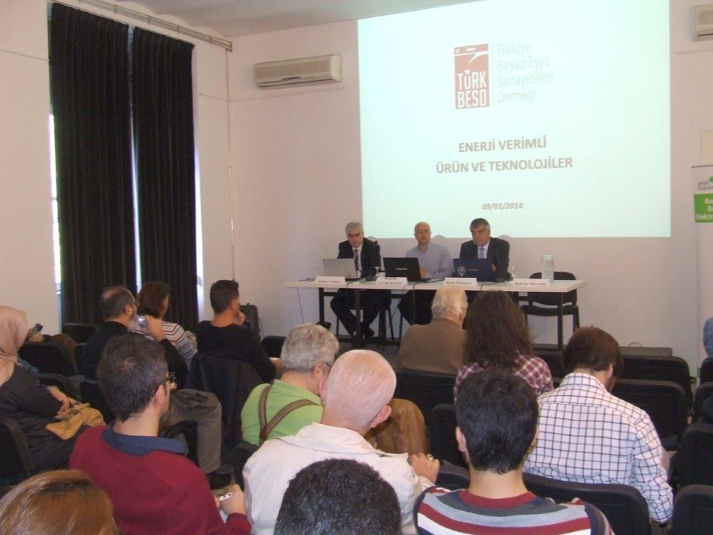 Türk Beyaz Eşya Sanayicileri Derneği Genel Koordinatörü Rıfat Öztaşkın konuşmasında ülkemizde enerji verimli ürünlerin üretilmesi, enerji etiketlerinin belirlenmesi konusundaki serüveni hakkında detaylı bilgiler sundu.