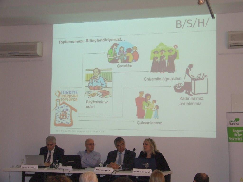 BSH Pazarlama Yöneticisi Bahriye Bayraklı Tavukçuoğlu , BSH’ın Enerji Verimliliği konusundaki yaklaşımı, üretilen ürünler, arge çalışmaları, Sosyal sorumluluk ve bilinçlerdirme kampanyaları konusunda detaylı bilgiler sundu.